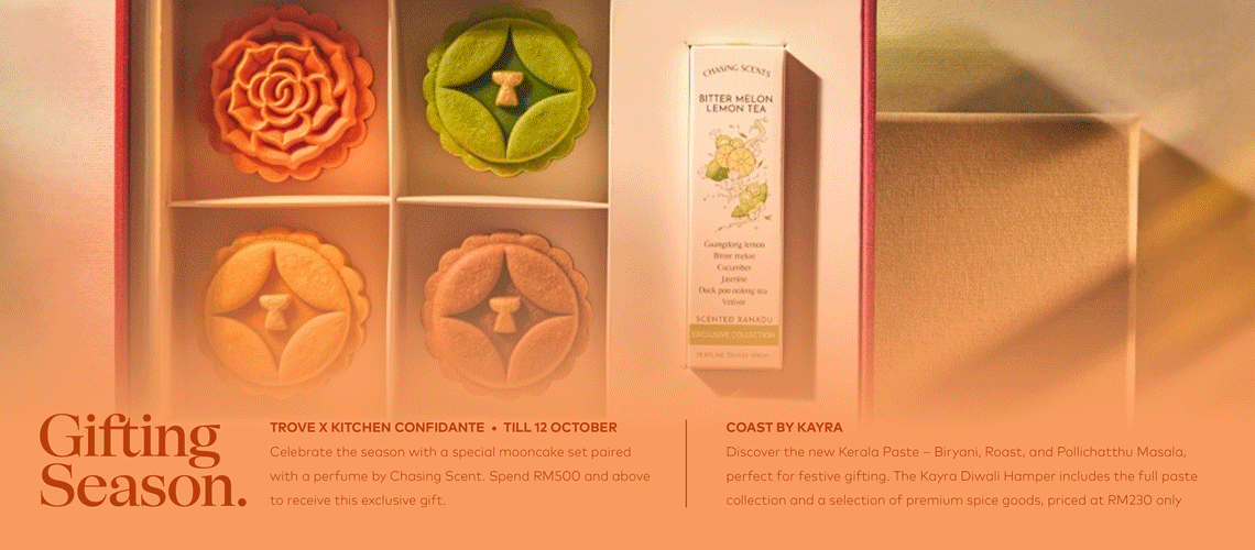 Enjoy exclusive gifts with your purchase, now until 31 August! Spend RM500 and choose between a gift set worth RM520 (Active Tonic 90ml + Ultra Vital Light 3ml) or the MQ Sublime Gold Conditioner Mini. Spend RM1000 and choose between the Precious Mask 100ml with Trove Pouch or the MQ PD Luxurious Mask. Plus, receive a curated drip bag from Curate Coffee Roasters with any Parfums Dusita purchase.